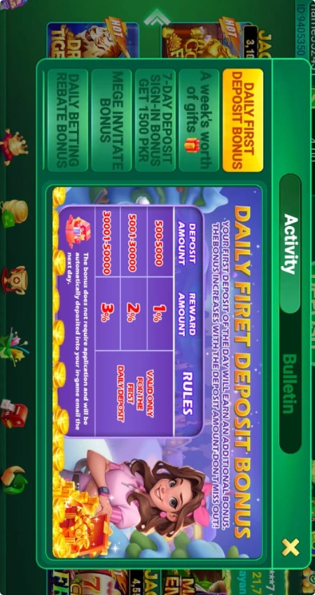 When users add balance to their account, they may receive a top up bonus. This encourages users to participate more and enjoy extended gameplay.