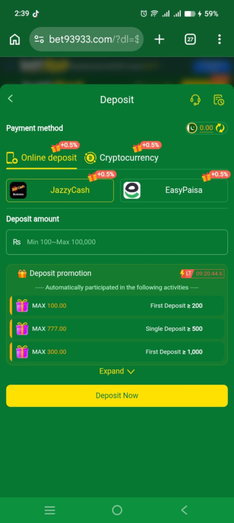 - Navigate to the wallet or deposit section.